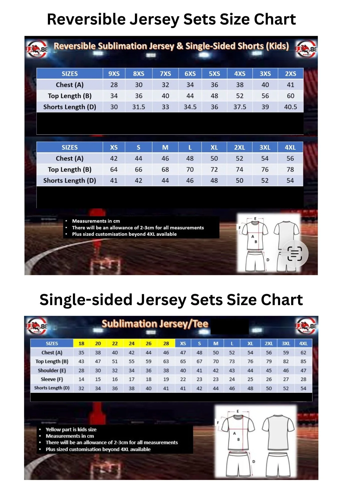 FFC Jersey Size Chart